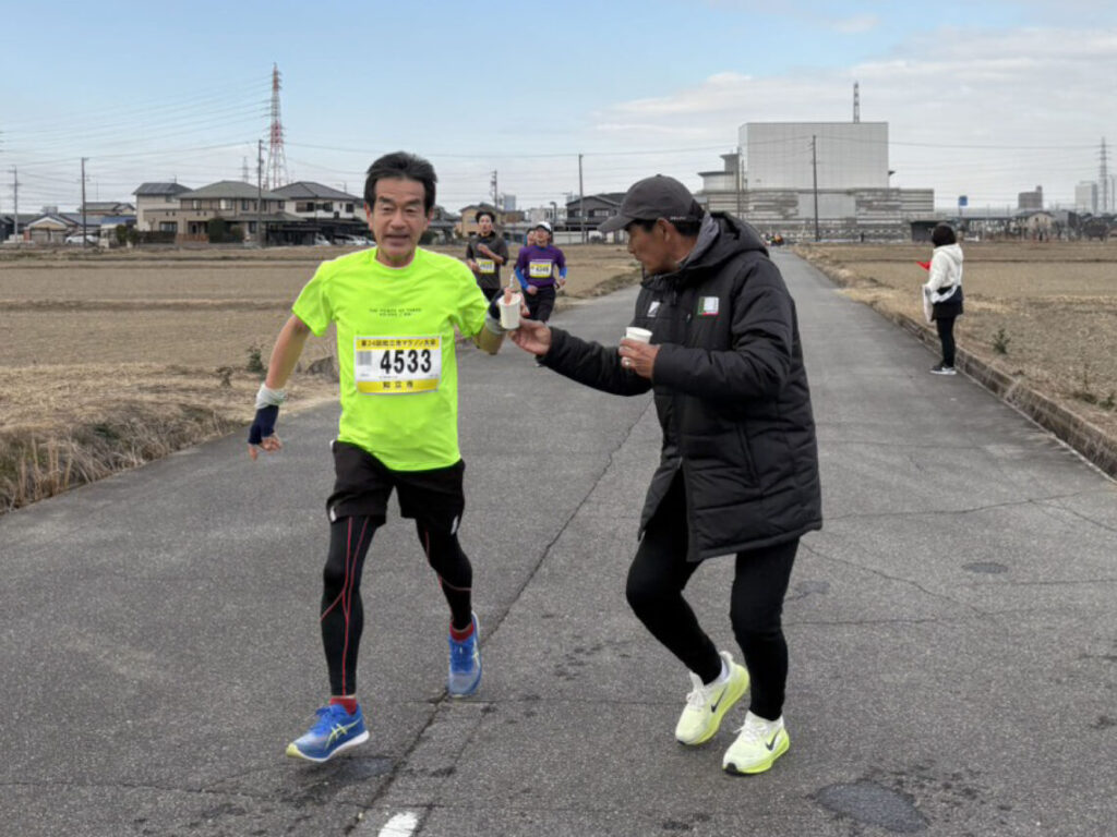 この度、第24回知立市マラソン大会にて、トップチームスタッフ4名が給水所の運営を担当いたしましたのでお知らせします。