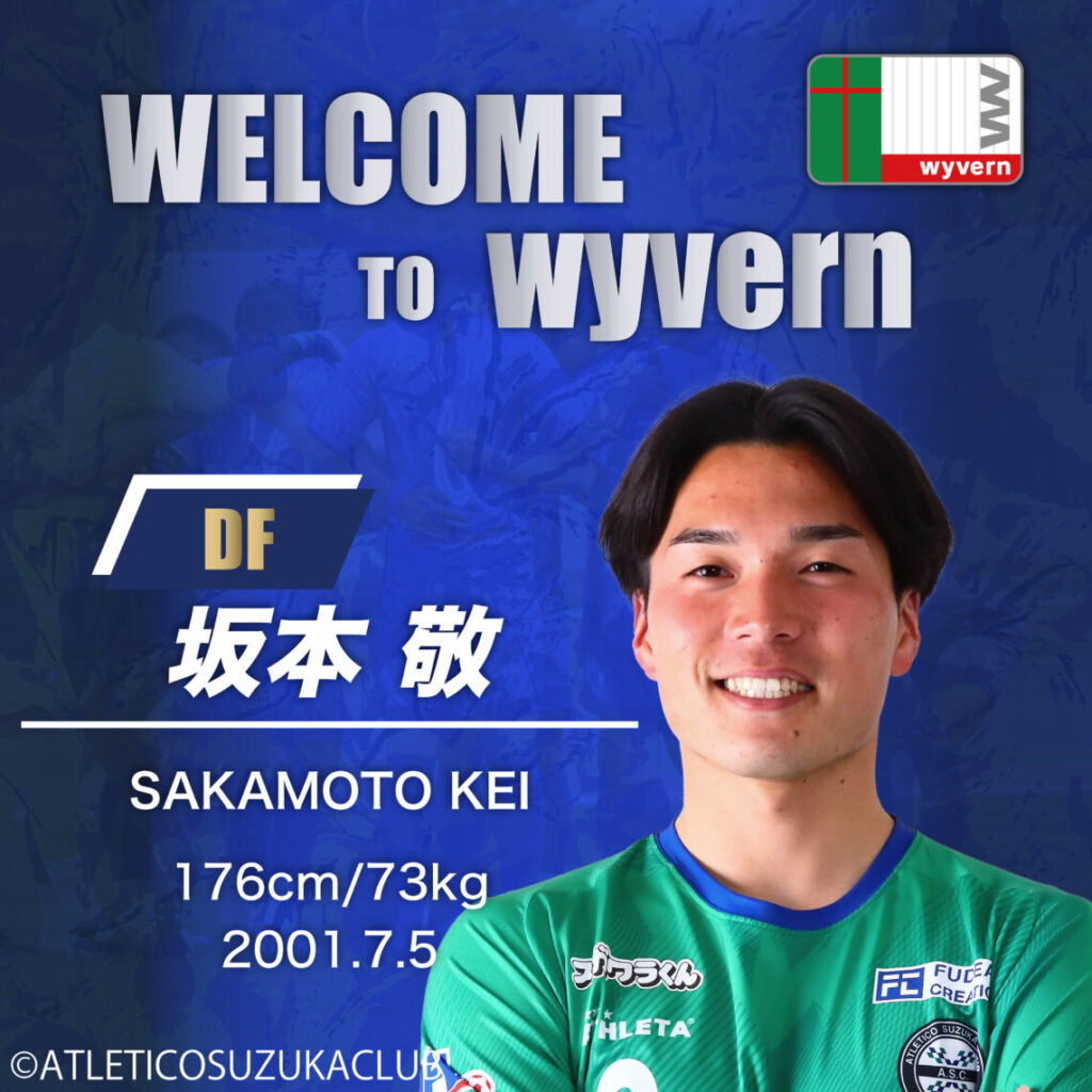 このたび、2026シーズンの新戦力として、アトレチコ鈴鹿クラブより坂本 敬選手の加入が決定しましたのでお知らせいたします。