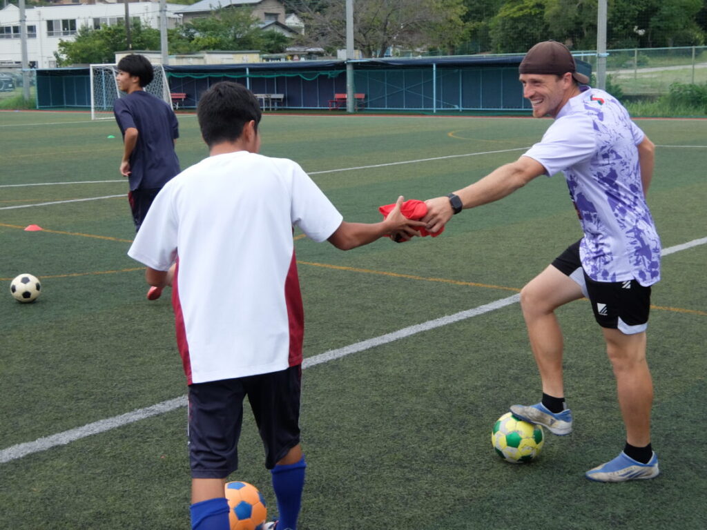 最初は緊張気味だった生徒の皆さんも、ボールを蹴るうちに表情がほぐれ、プレー中の声掛けや笑顔も生まれるなど、活気あるトレーニングとなりました。最後のミニゲームではトップチーム選手も混ざり、普段は味わえないサッカー形式でのゲームも体感していただきました。